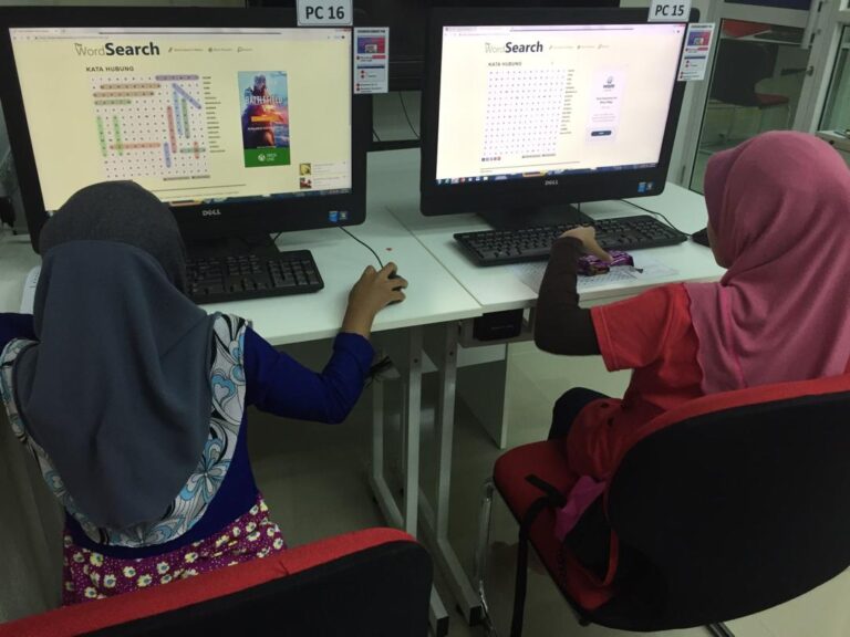 Pelajar Tahap 1 membuat latihan Bahasa Melayu kata Hubung melalui laman sesawang.